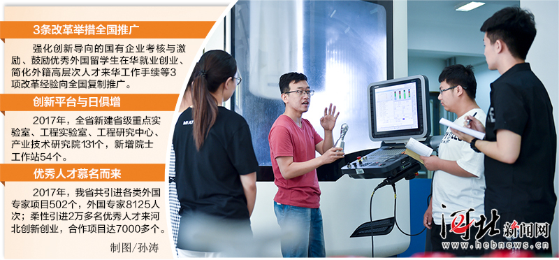 更多的優秀人才慕名而來。2017年,我省共引進各類外國專家項目502個,外國專家8125人次;柔性引進2萬多名優秀人才來河北創新創業,合作項目達7000多個。