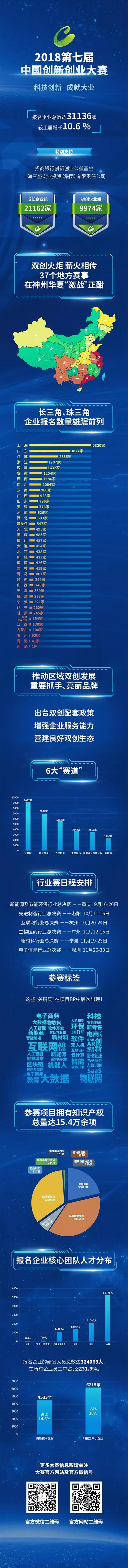2018第七屆中國創新創業大賽報名工作已經結束,據大賽組委會辦公室統計數據分析,本屆賽事報名企業數量達31136家,較上屆增長10.6%。