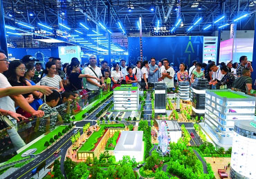 觀眾在首屆中國國際智能產業博覽會上參觀“城市智慧交通新生態”動態沙盤。新華社記者 王全超攝