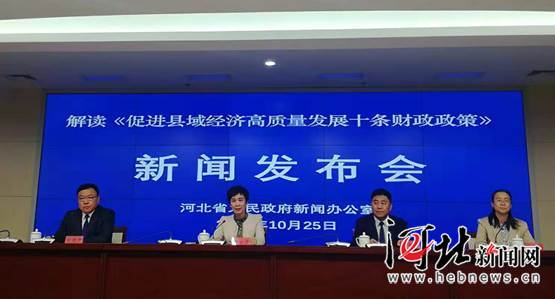河北新聞網10月25日訊(記者張巖)今天,河北省政府新聞辦召開發布會,省財政廳對省政府近日印發的《促進縣域經濟高質量發展十條財政政策(試行)》(以下簡稱《十條政策》)進行解讀。