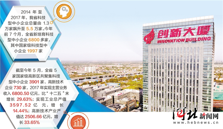 統計顯示,截至今年5月,包括石家莊高新區在內,全省5家國家級高新區共聚集科技型中小企業3901家、高新技術企業730家,2017年實現主營業務收入6800.50億元,比“十二五”末增長29.63%;實現工業總產值3597.52億元,增長14.44%;高新技術產業產值達2506.66億元,增長33.65%。