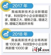 精準服務搭好平臺刺激生長促進轉化 河北省力促科技創新主體高強度增長 制圖/展茂光 河北新聞網訊(記者郭偉)2018年河北省高新技術企業和科技型中小企業將分別再新增1000家、10000家。記者