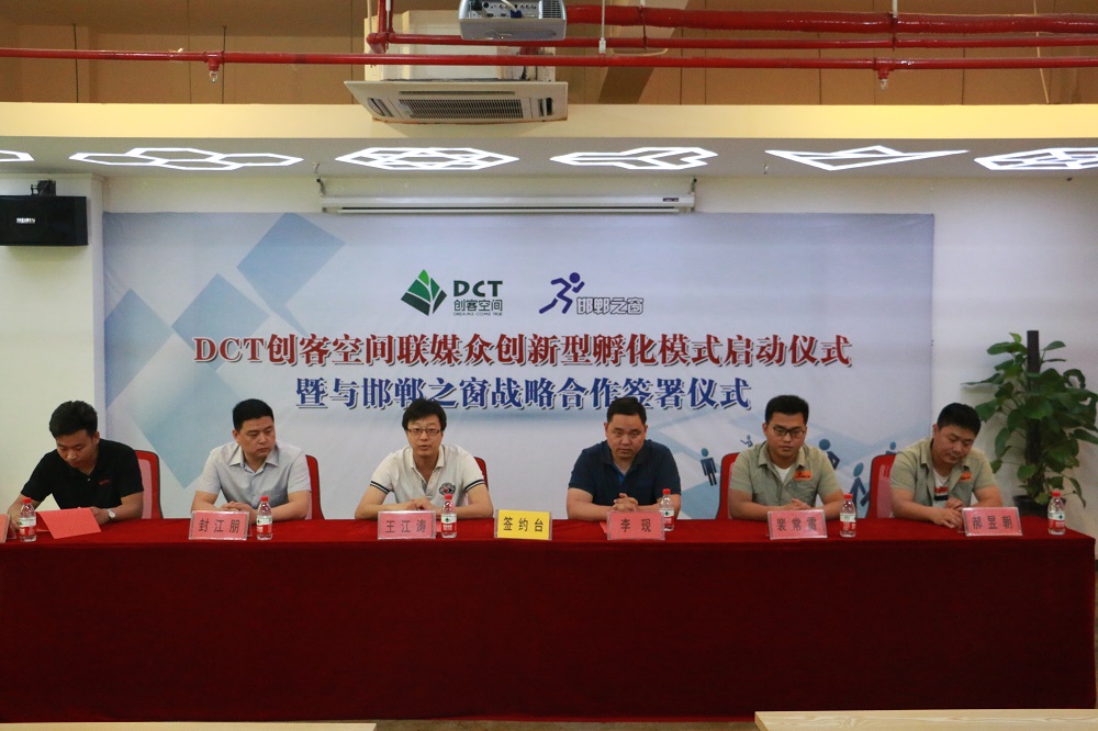 在儀式上,邯鄲高科董事長王江濤與邯鄲之窗總經理李現就DCT創客空間聯媒眾創新型孵化模式的發展達成了共識,簽署了戰略合作協議。